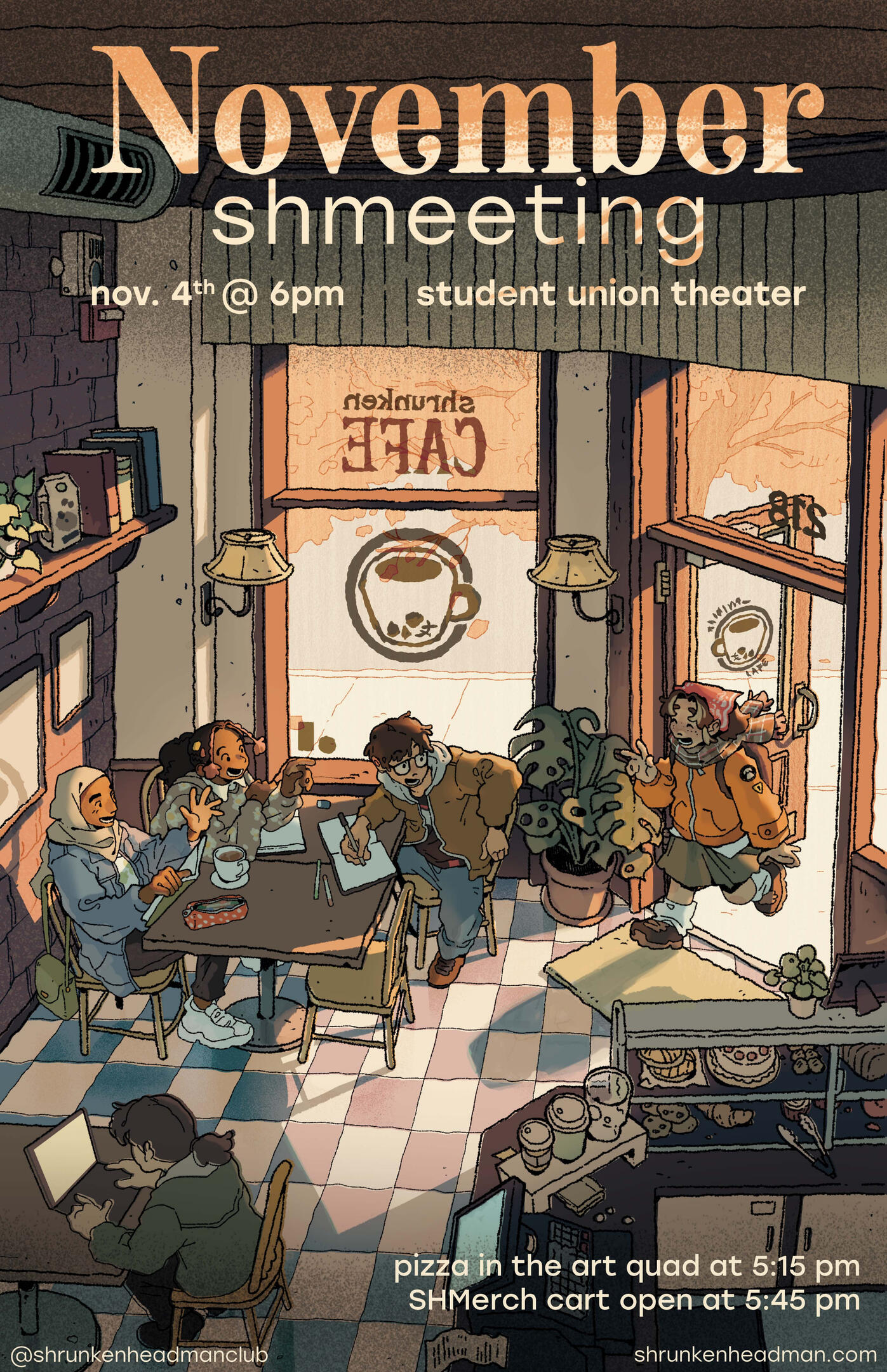 Posters and graphics for the Animation/Illustration Club at San Jose State University (Shrunkenheadman Club)