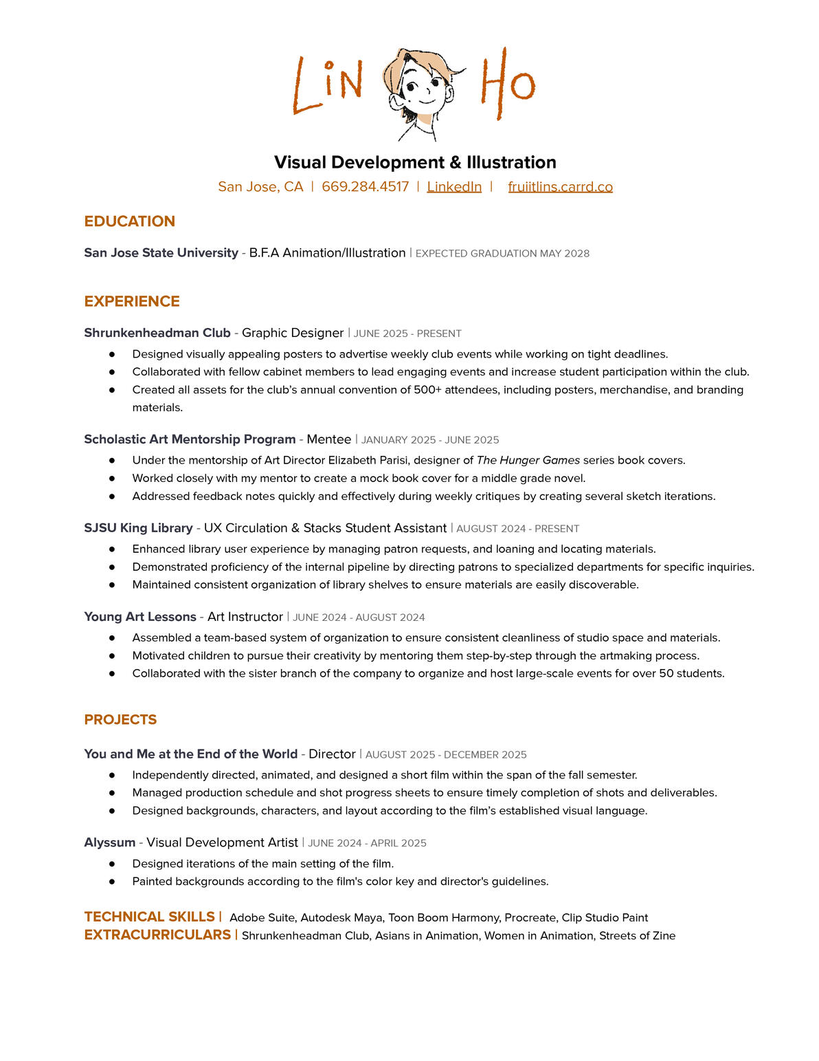 I am a third-year college student based in San Jose, California pursuing a BFA with a focus on visual development and illustration!My work is inspired largely by pieces of my daily life as I try to capture the magic in the mundane. Because I've lived in the same city for all my life, my art became a way for me to learn to treasure the place I've always been trying to escape from.In my free time, I love skateboarding, biking, and traveling across the Bay Area on public transit.